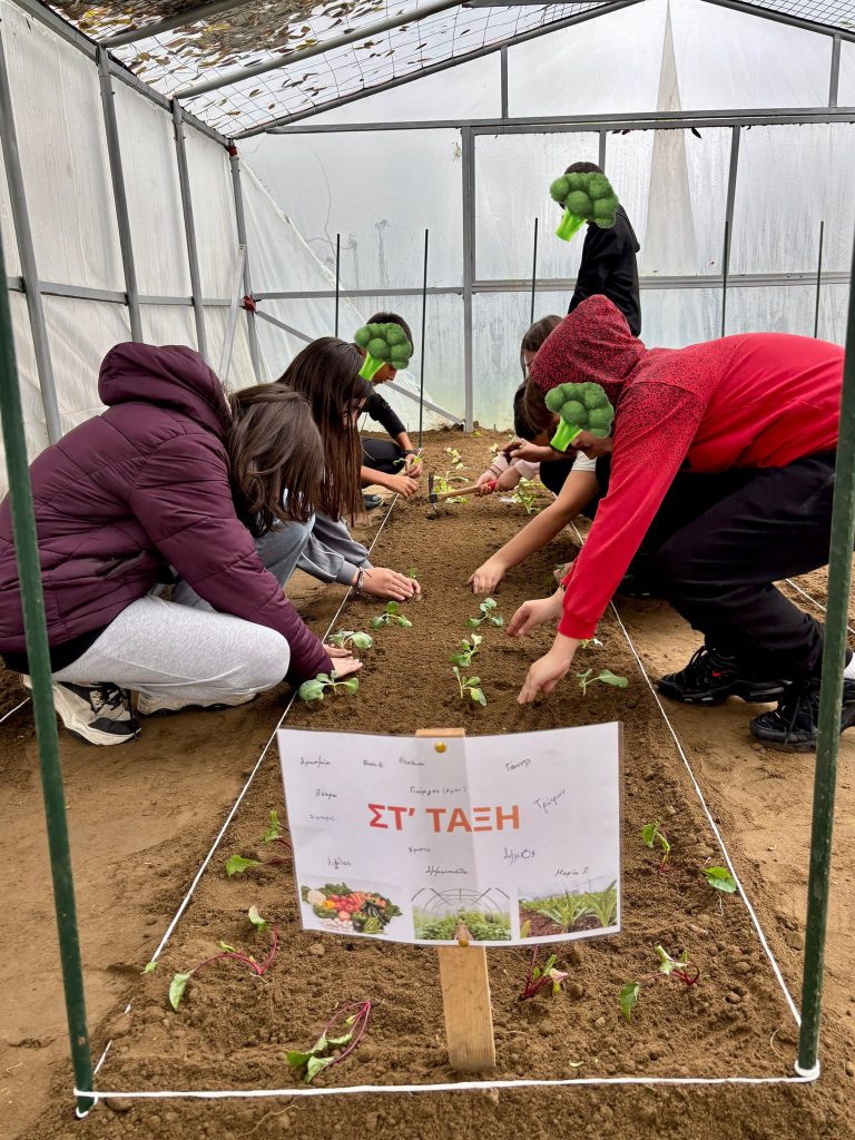 Στο σχολικό κήπο όμως φυτρώνει και πάλι κάτι όμορφο. Εδώ και έναν μήνα, το μαθητικό θερμοκήπιο έχει γεμίσει με ποικιλία λαχανικών, με κάθε τάξη να έχει αναλάβει τη φροντίδα του δικού της παρτεριού. Παρτέρια, που γεμίζουν με μπρόκολα, κουνουπίδια, μαρούλια, λάχανα, καρότα, παντζάρια, ρεπάνια, καθώς και ρόκα, σκόρδα, κρεμμυδάκια, σέλινο και αντίδια.