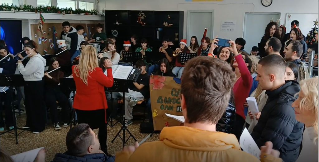 Ειδικότερα, η μαθητική φιλαρμονική ορχήστρα του Μουσικού Σχολείου, με περισσότερα από σαράντα μέλη, επιβιβάστηκε σε ένα «Xmas Magic Bus» με τα μουσικά της όργανα, και συνοδεία εκπαιδευτικών και μελών του Ειδικού Εκπαιδευτικού Προσωπικού, επισκέφθηκε διαδοχικά το Ε.Ε.Ε.Ε.Κ. στον οικισμό των Υφαντών και το ΕΝ.Ε.Ε.ΓΥ.Λ. στον οικισμό της Μελέτης, φέρνοντας στον χώρο τους το πνεύμα των Χριστουγέννων μετά μουσικής!
