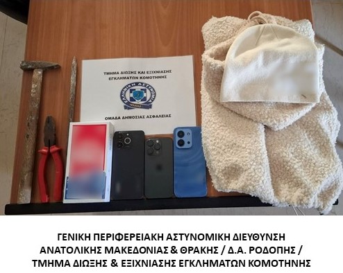 Στο πλαίσιο των αστυνομικών ερευνών κατασχέθηκαν διαρρηκτικά εργαλεία, είδη ένδυσης και κινητά τηλέφωνα.